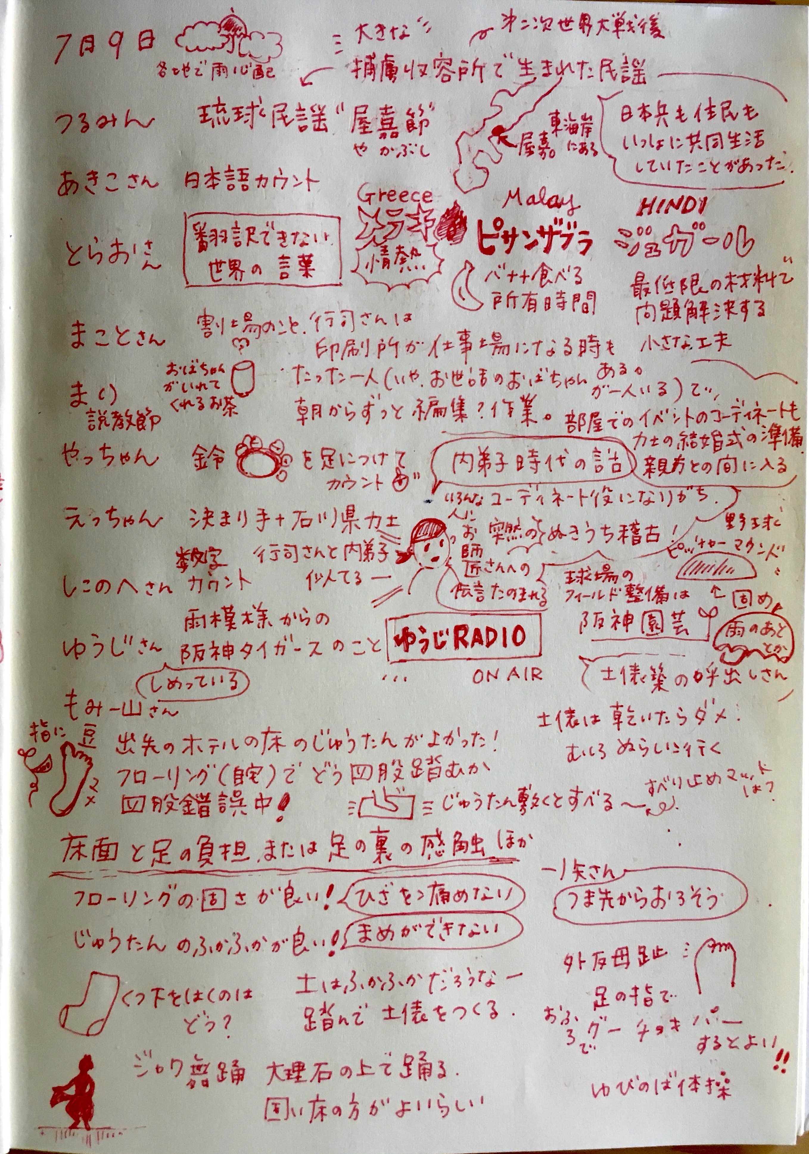 10名参加。東京、茨城、京都、大阪、福岡、沖縄より参加。ルルベ、ドゥミプリエ、壁の股割り、腰割りから開始。本日のカウントは、屋嘉節、日本語の数字(普、鈴付、爽)、「翻訳できない世界のことば」(サンダース著、前田まゆみ訳)、木村朝之助さんとJACSHAのトーク「岩槻と相撲と音楽2017」、「説経節」(伊藤比呂美現代語訳)、決まり手、石川県出身力士、湿っている阪神、のカウントで1000回。
